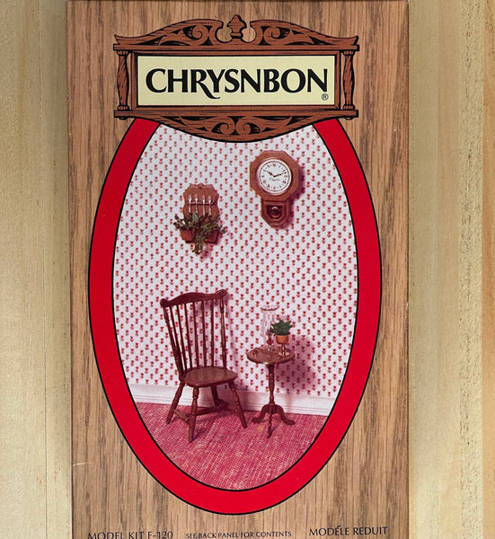 1:12 Dollhouse DIY Duxbury Chair Kit from CHRYSNBON. This kit comes with a candlestand table, a spoon rack with 4 teaspoons, a Duxbury chair and a school clock.