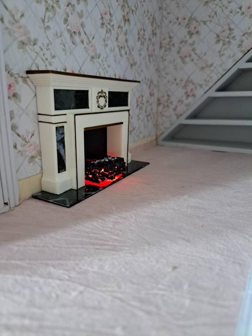 This is a miniature glowing embers with a 12v plug and light bulb for a 1 inch scale dollhouse.