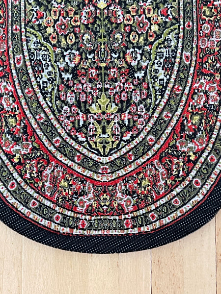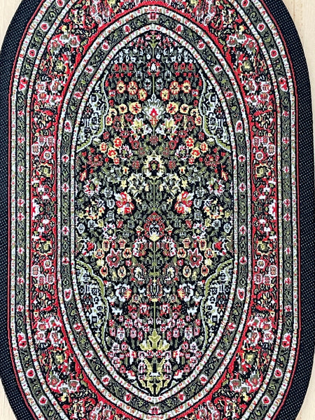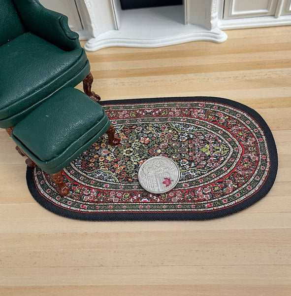 This is a dollhouse miniature oval area rug in 1 inch scale.