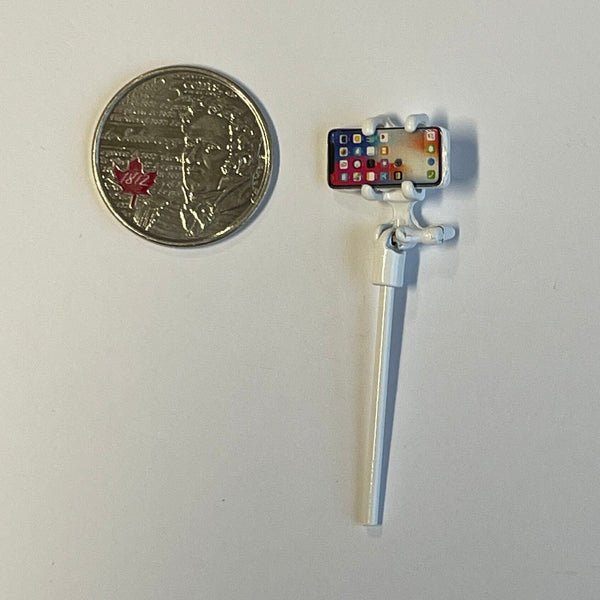 1:12 Miniature Selfie Stick and Phone Set of 2 , White Metal Selfie Stick , White Phone - C101