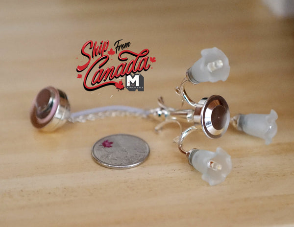 1:12 Miniature Silver 3-Arm Down Tulip Chandelier Battery Powered LED Light with On Off Switch