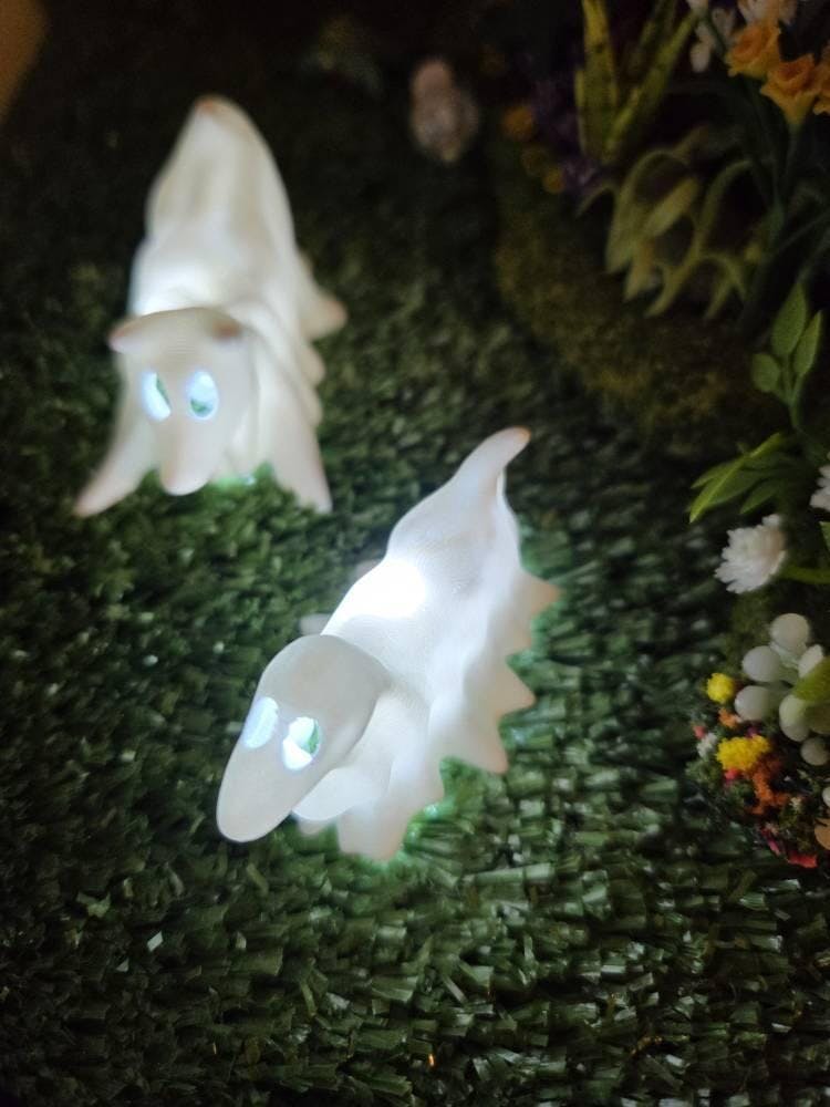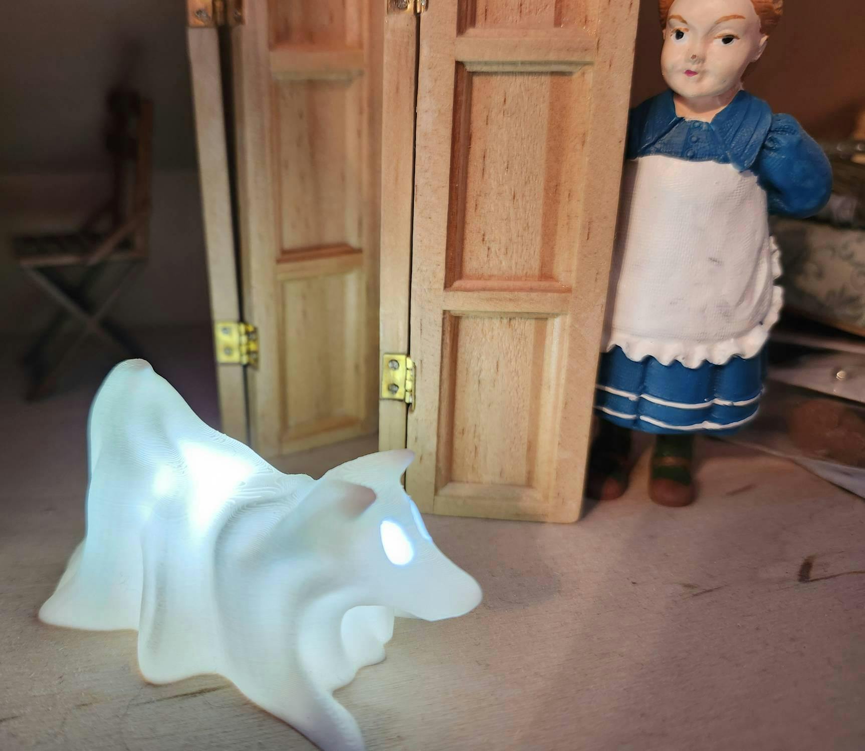 This 1 inch scale miniature draped ghost dog is ready to paint and it also comes with 2 battery powered micro LED bulbs that you can put into the hollow body. Don't stare at his eyes... he is ready to run......