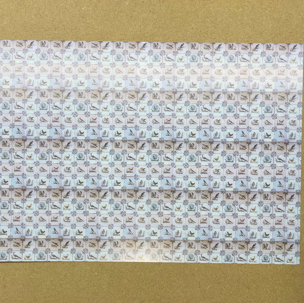 Dollhouse Supplies delft birds tile wallpaper 1:12 scale miniature square wall tile sheet 16-1/8 inch wide (paper) (blue gray)