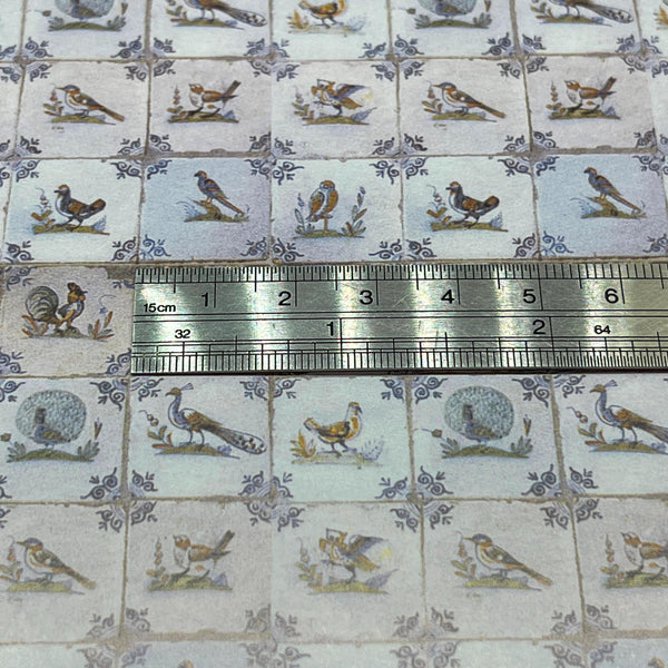 This is a piece of delft birds tile wallpaper for a 1 inch scale dollhouse.