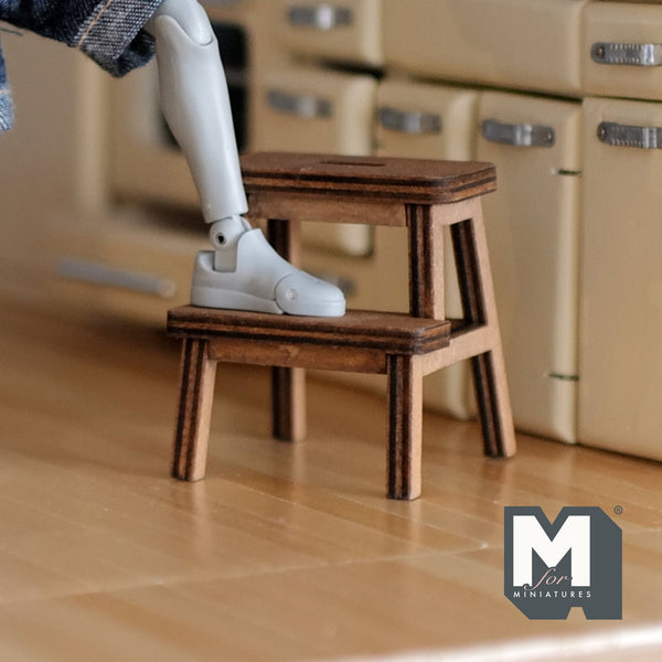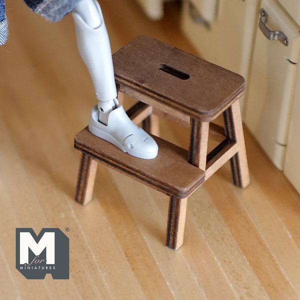 Dollhouse Supplies Kitchen Stool 1:12 Scale Miniature Wooden Steps Dollhouse Supplies Furniture Step Ladder (walnut) - D071
