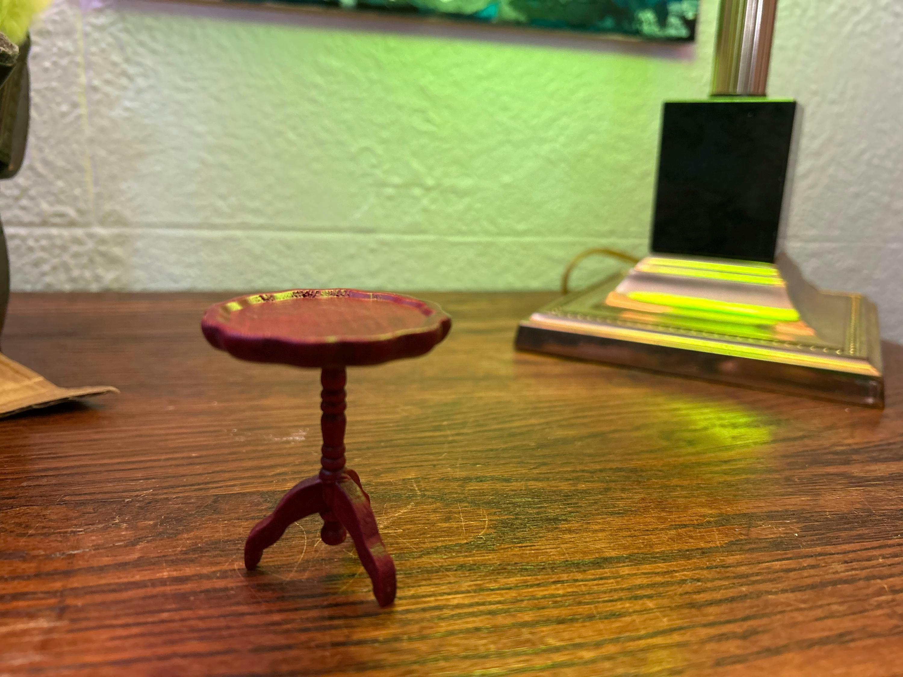 This is a handmade wooden miniature coffee table for a 1 inch scale dollhouse.
