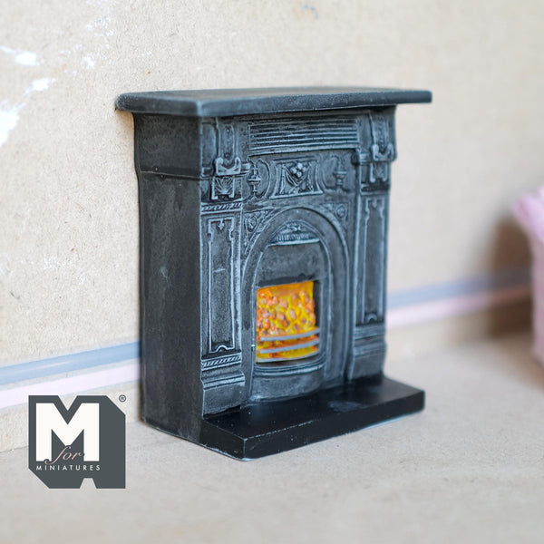 This is a miniature fireplace in 1 inch scale. Note it is not assembled from real stone and the entire piece is made from cast resin.