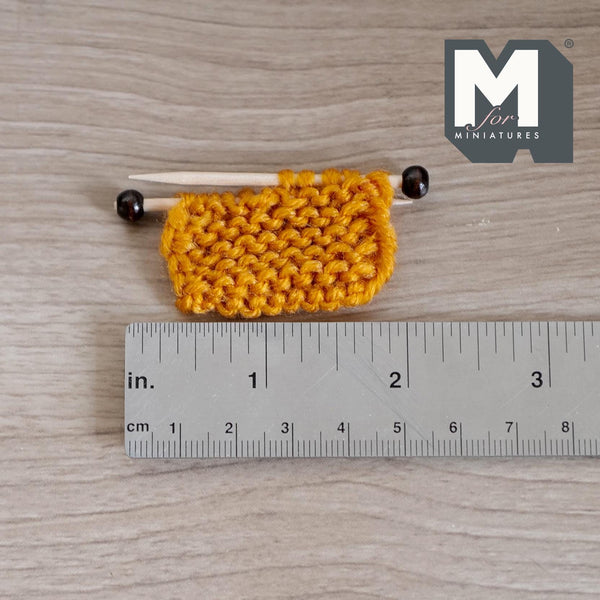 This is a miniature working yarn set with 2 knitting needles and a work-in-process yarn.