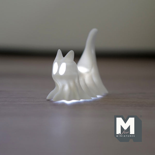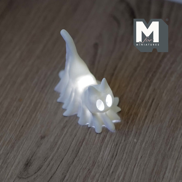 This 1 inch scale miniature draped ghost cat is ready to paint and it also comes with 2 battery powered micro LED bulbs that you can put into the hollow body. Don't stare at his eyes... you never know what will come next.......