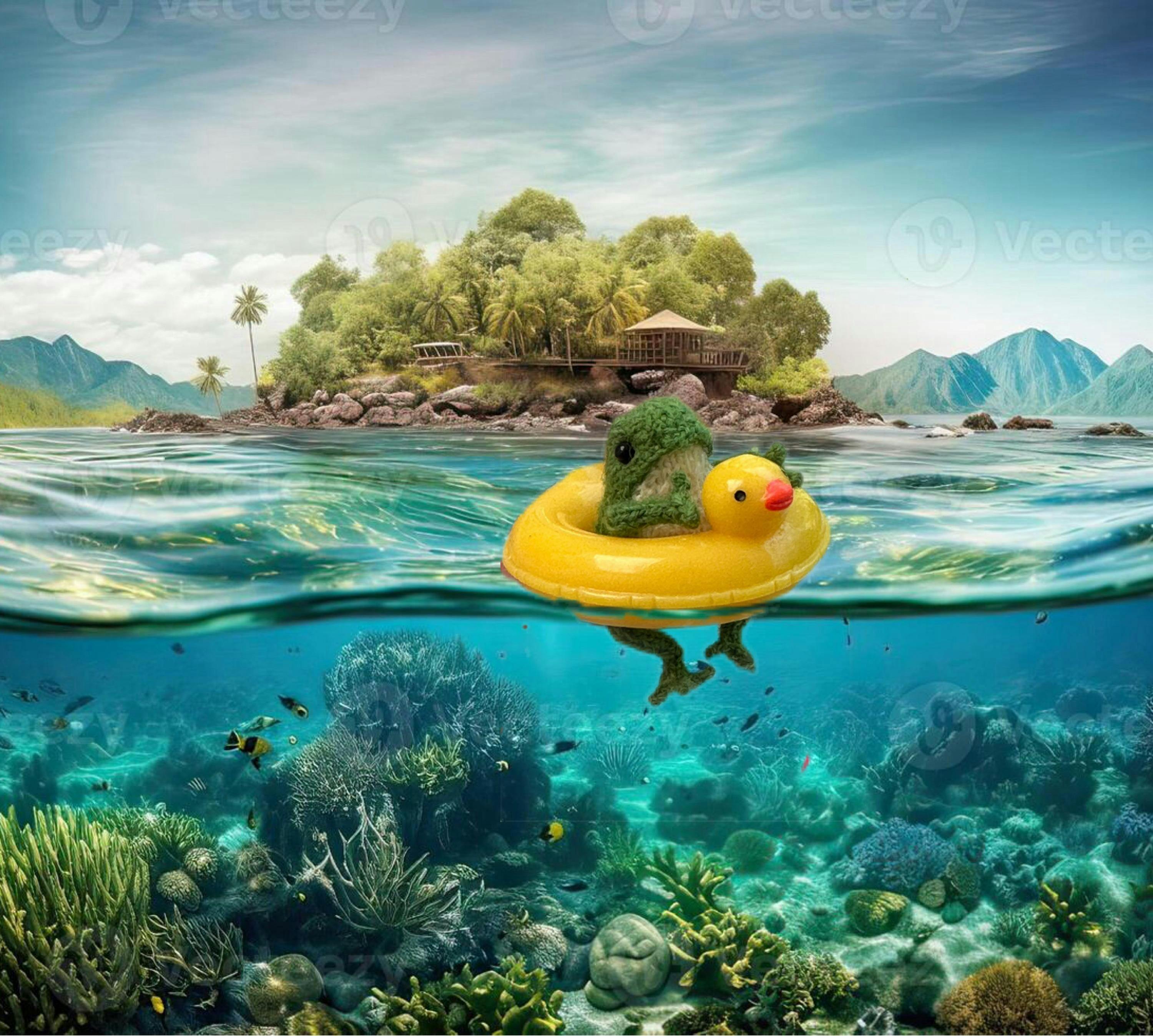 This is a Dollhouse miniature yellow duck pool float, swimming inflatable, tube