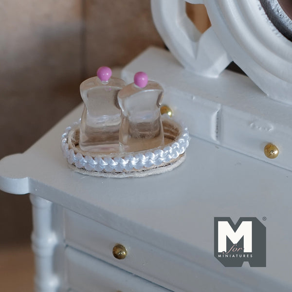 This is a set of miniature oval rope basket and 2 bottles in 1 inch scale.