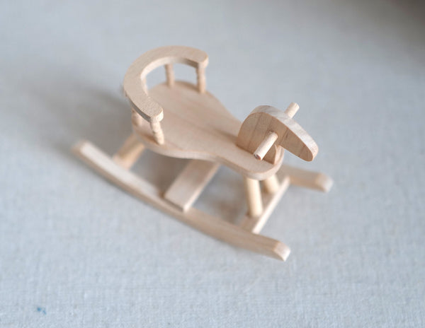 Dollhouse Miniature Unfinished, Unpainted Rocking Horse Baby Trojan Horse.
