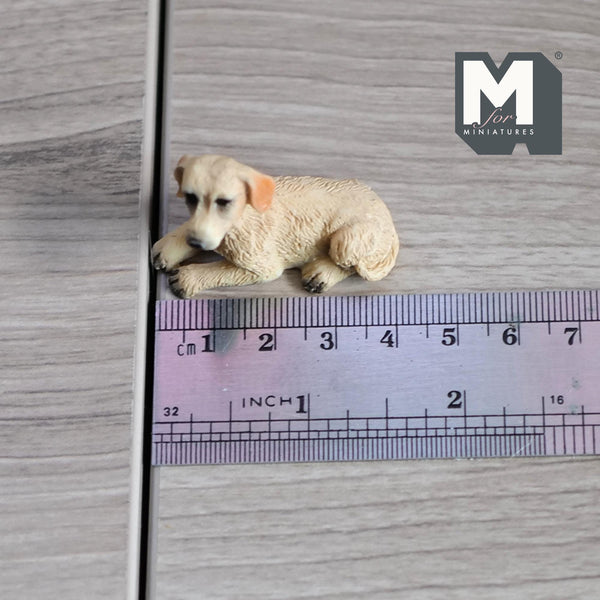 This 1 inch scale miniature laying Labrador Retriever has been meticulously painted with intricate detail.