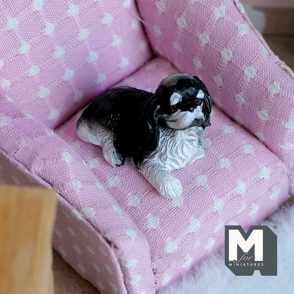 This 1 inch scale miniature laying Spaniel has been meticulously painted with intricate detail.