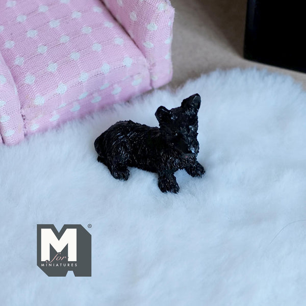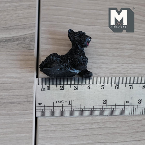 Miniature Laying Wire Fox Terrier 1:12 Scale Smooth Coat Terrier 1-1/2 inch long (cast resin) (black) -