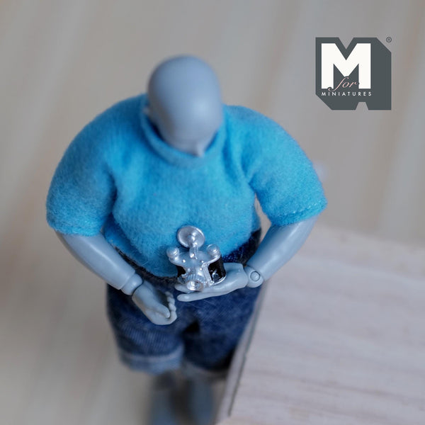 Miniature Old Camera with Flash Light 1:12 Scale Dollhouse Supplies Metal Camera 9/16 inch tall - E101
