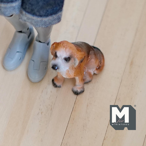 This 1 inch scale miniature sitting Beagle has been meticulously painted with intricate detail.
