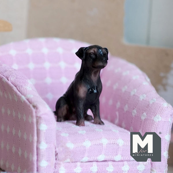 This 1 inch scale miniature sitting Black Labrador has been meticulously painted with intricate detail.