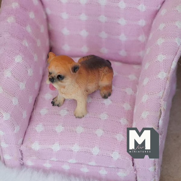This 1 inch scale miniature sitting Pug has been meticulously painted with intricate detail.