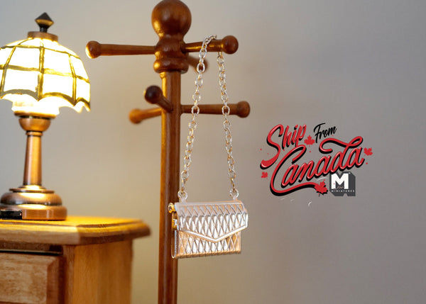 You are viewing a 1:12 dollhouse fashion accessories miniature metal luxury purse with shoulder strap, handbag with shoulder strap.