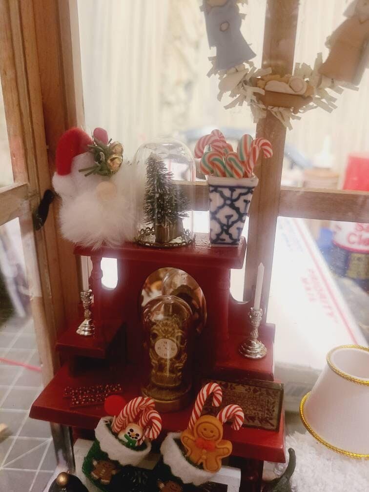 1:12 Dollhouse Miniature Decorated Christmas Tree under glass dome display on metal base