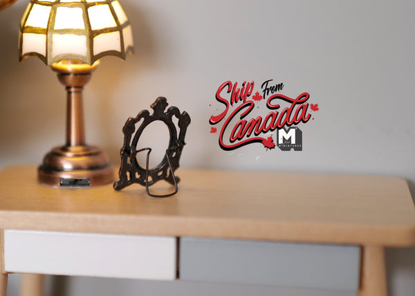 1:12 Dollhouse Miniature Metal Oval Ornate Picture Frame with Stand - B053