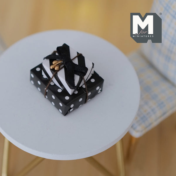 This is a set of miniature presents for 1 inch scale dollhouse. Set of 2