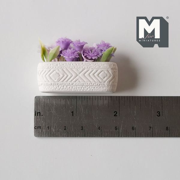 Dollhouse Supplies Flowers and Planter Trough 1:12 Scale Miniature Flowers and Long Clay Planter Box (blue) - H038